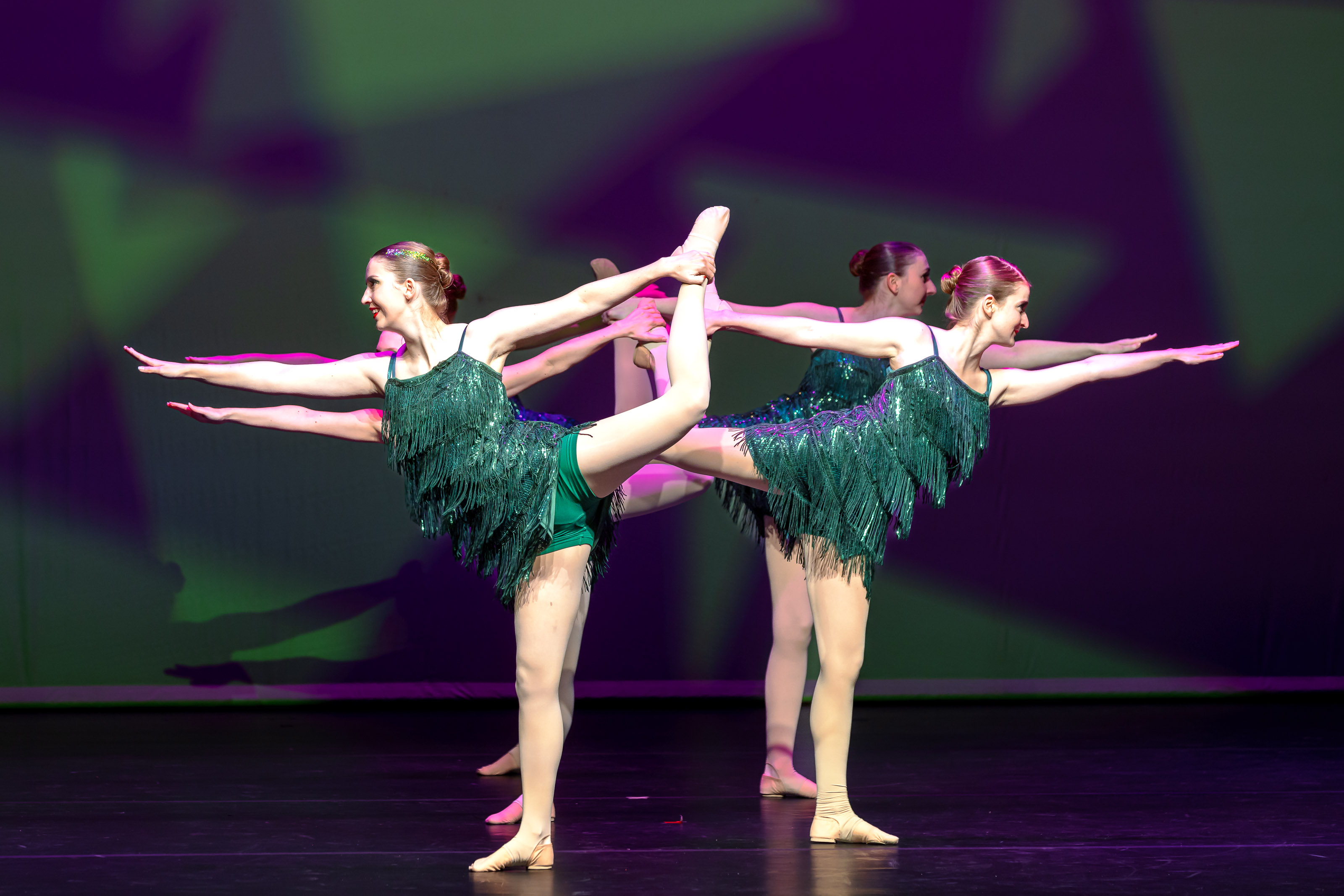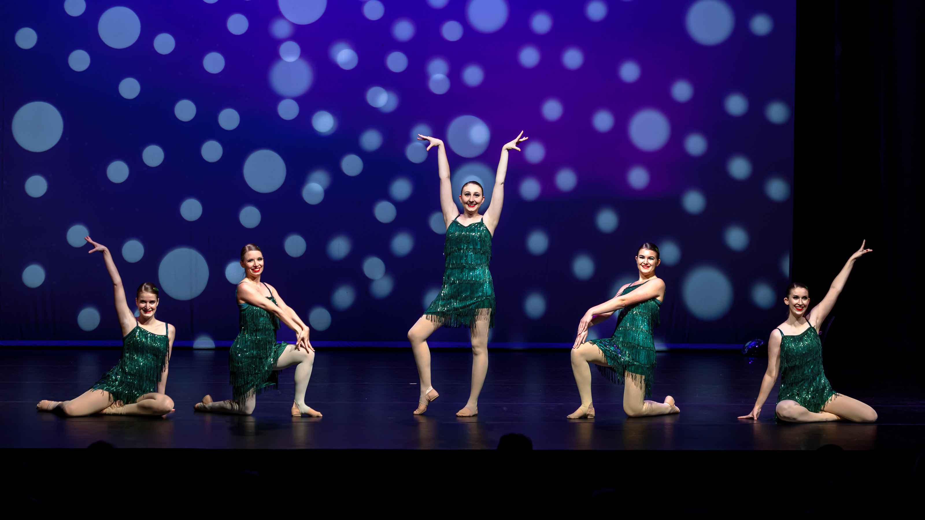 Der Showabend selbst begann mit einem Intro, den Tänzerinnen aller Gruppen gemeinsam gestalteten, auch von JustP waren selbstverständlich zwei Tänzerinnen dabei. In der ersten Hälfte waren dann auch schon JustP 18+ mit ihrem Tanz „Puttin‘ on the Ritz“ an der Reihe. Die grünen Glitzerkleider kamen mit dem Licht noch besser zur Geltung und so machte der Auftritt besonders viel Spaß.