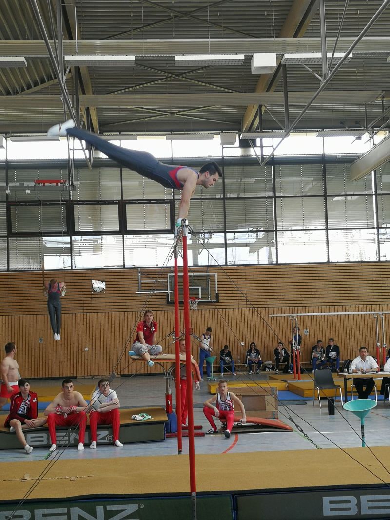 Julian Rentschler erturnte sich an den sechs Geräten eine solide Punktzahl von 58,95 und erreichte in fünf von sechs Geräten die Mannschaftswertung.